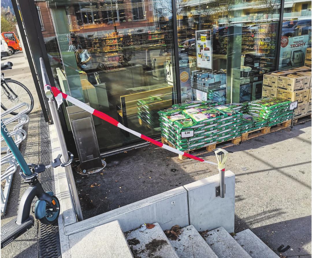 Beim Coop Elgg wollte sich eine Kundin am Geländer festhalten – und hatte es kurz darauf in der Hand. Zum Glück ist nichts passiert!