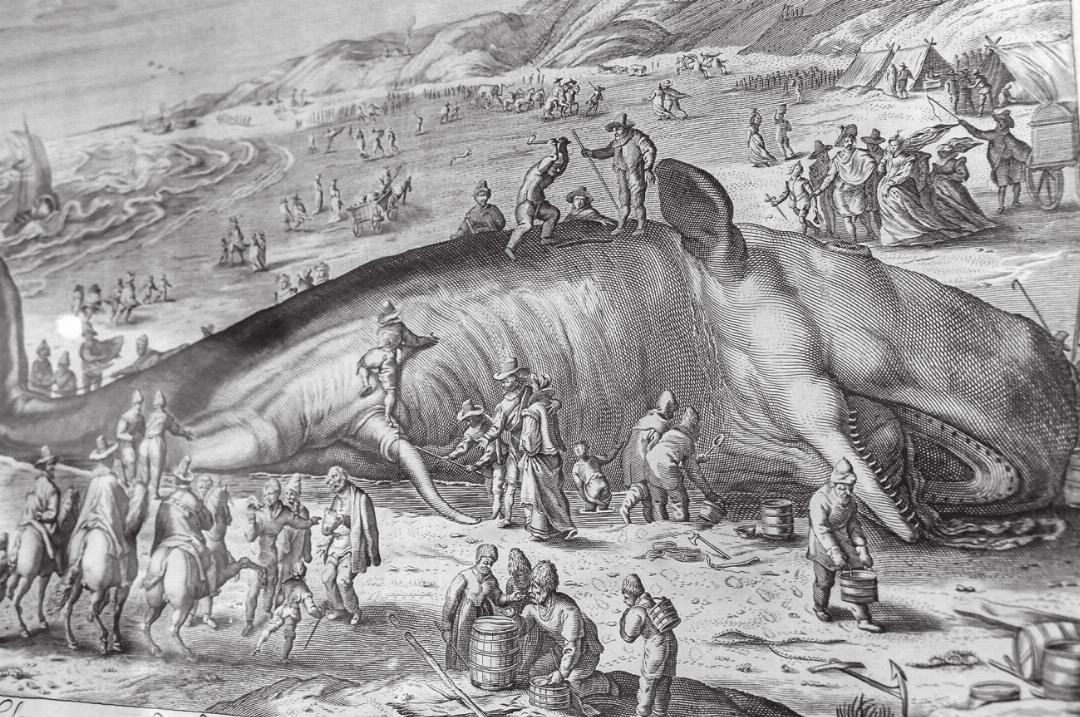 Kupferstich von Willem van der Gouwen (1679) eines 1598 bei Berkhey (NL) gestrandeten Pottwals. Im 17. Jahrhundert standen dabei weniger Mitleid als vielmehr Neugier, wissenschaftliches Interesse und die Nutzung des Wals als Rohstoffquelle im Vordergrund. Leserbild: Hans Maag, Elgg