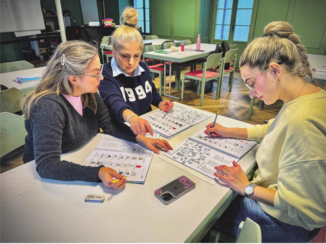 Die grössere Gruppe – unter ihnen Geflüchtete aus der Ukraine - beschäftigte sich tags darauf mit weiblichen und männlichen Berufsbezeichnungen in Ein- und Mehrzahl. Auch hier wartet Deutsch mit zahlreichen Unregelmässigkeiten und schwierigen Aussprachen auf, wie beispielsweise «Pflegefachmann, Mechatroniker oder Altenbetreuer.» Die weibliche Form von Hausmann ist leider nicht Hausmännin und im Plural Hausmänninnen – sonst wäre es am Ende noch einfach.
