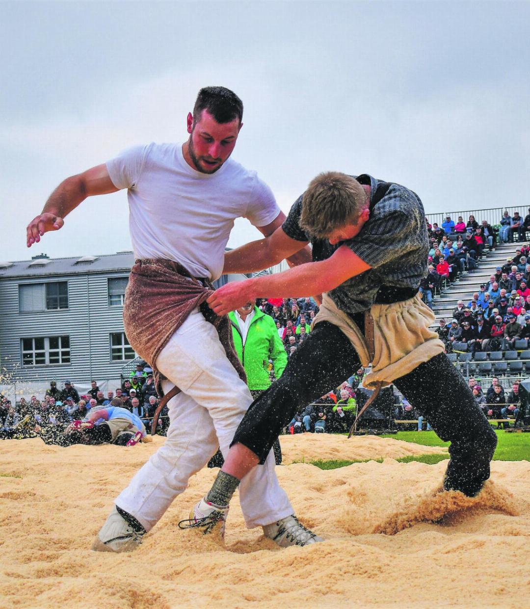 Auch Karim Leuppi konnte in seinem ersten Kampf nicht wirklich überzeugen, so musste er sich das Sägemehl vom Rücken wischen lassen. Nach dem Remis in der zweiten Begegnung konnte er den dritten Kontrahenten auf den Rücken legen. Der vierte und fünfte Kampf endeten in einem Unentschieden für Leuppi, wobei er im fünften die sehr gute Note von neun Punkten erhielt. Mit dem gewonnenen sechsten Kampf belegte er mit ganz genau 55 Punkten den Rang 12i. Der Wildberger Janos Bachmann konnte insgesamt zwei GänGe mit der Maximalnote für sich entscheiden. In den anderen vier Kämpfen liess er sich leider ins Sägemehl legen. Er holte sich mit 54 Punkten den Schlussrang 16l. Auch Fabian Plüer konnte zwei Gänge für sich entscheiden, den vierten Kampf sogar mit der Höchstnote. Leider musste er sich ebenfalls viermal einen Kreis ins Notenblatt schreiben lassen. Mit 53,75 Punkten erreichte er den Schlussrang 17b. Der 2007 geborene Niklas Frauenfelder aus Hofstetten konnte sich mit 52,5 Punkten den Schlussrang 21g reservieren lassen. Er liess sich von fünf Kontrahenten auf den Rücken legen. Den zweiten Gegner aber konnte er so ins Sägemehl werfen, dass er die Maximalnote von zehn Punkten erhielt.