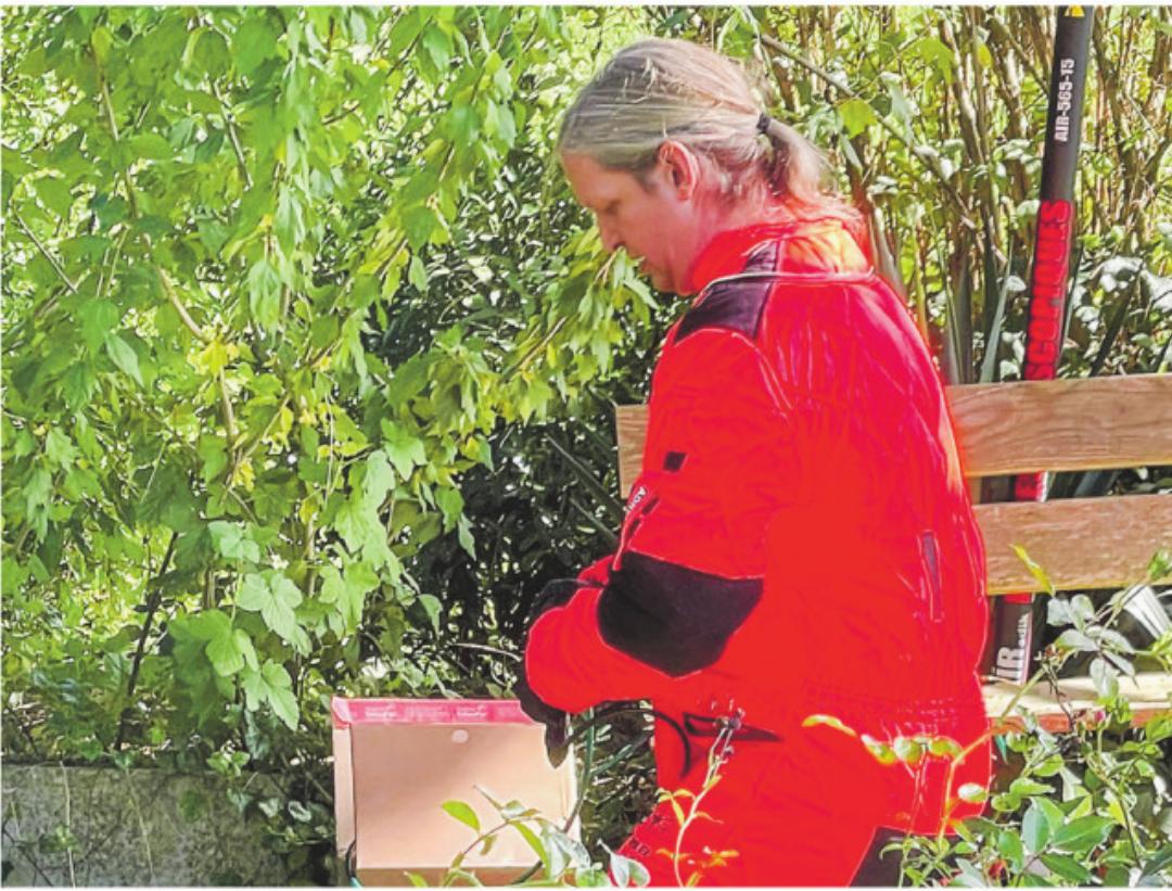 Mit Hilfe von Locktöpfen, Beobachtungen und Berechnungen konnte man schliesslich den Standort in Neu-Elgg eingrenzen. Dennoch gelang es auch im Rahmen der aufwändigen Suchaktion durch Experten des Kantons am Mittwoch vergangener Woche immer noch nicht, das Nest aufzustöbern (die «Elgger/Aadorfer Zeitung» berichtete). Nach der erfolglosen Suchaktion gaben engagierte Elggerinnen und Elgger aber nicht auf, vernetzten sich und halfen noch einmal eifrig mit. Am Freitagmorgen war es dann so weit. Patricia Engel entdeckte das Nest beim Morgenspaziergang auf einem Baum in einem Garten an der Trottenstrasse, wie Ruckstuhl berichtet.