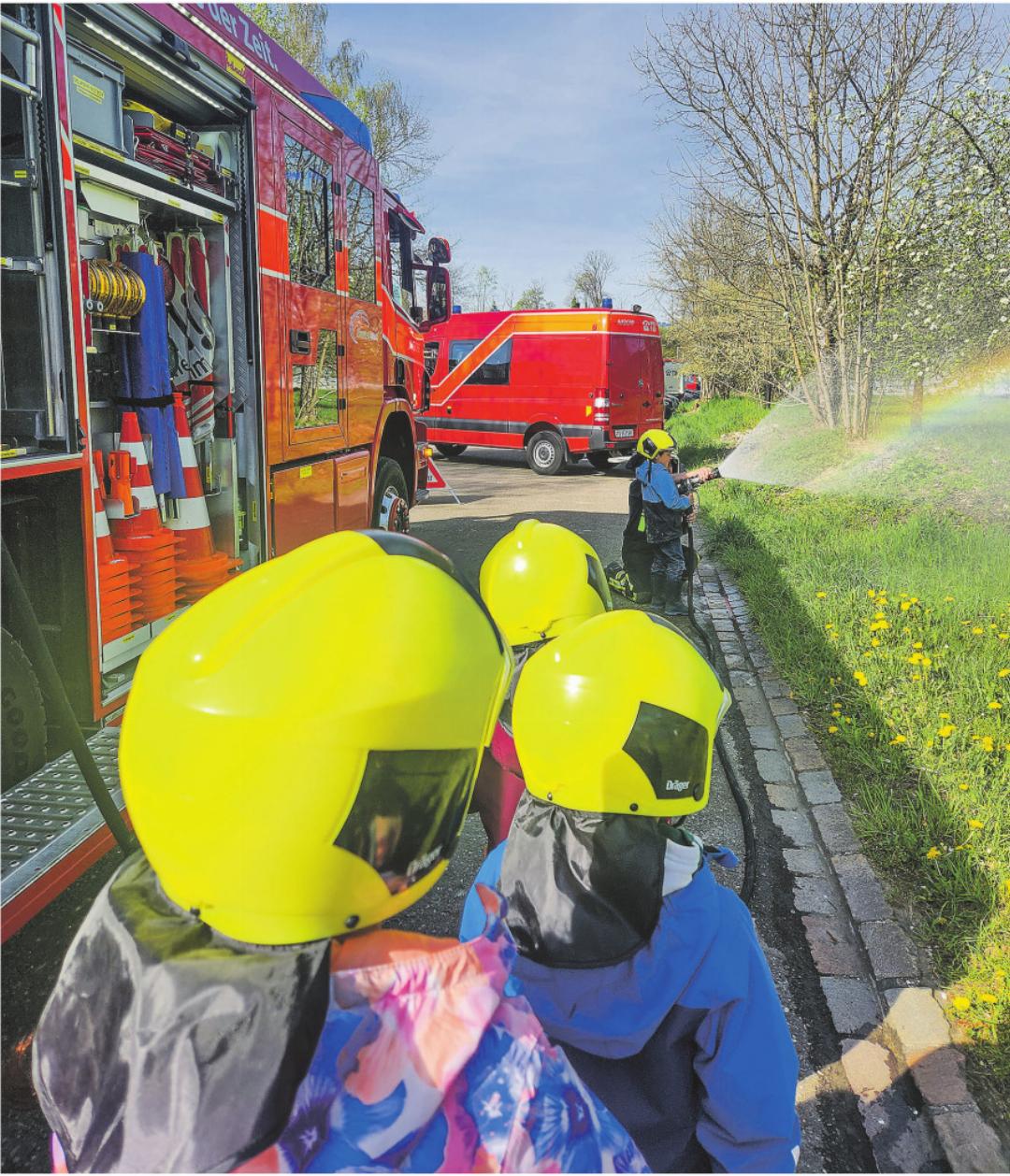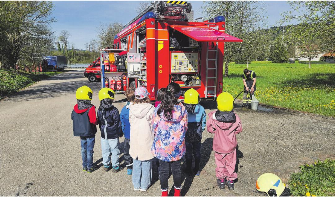 Schon beim Ankommen im Feuerwehrdepot lag eine Mischung aus Aufregung und Staunen in der Luft. Die Kinder durften die Feuerwehrautos und das Material aus nächster Nähe erkunden, Helme anprobieren und sich einmal wie echte Feuerwehrleute fühlen. «Ich wusste gar nicht, dass ein Feuerwehrauto so viele Schläuche und Geräte hat», sagte ein Kind beeindruckt. Ein anderes meinte leise, aber stolz: «Der Helm war viel schwerer, als ich gedacht habe.»