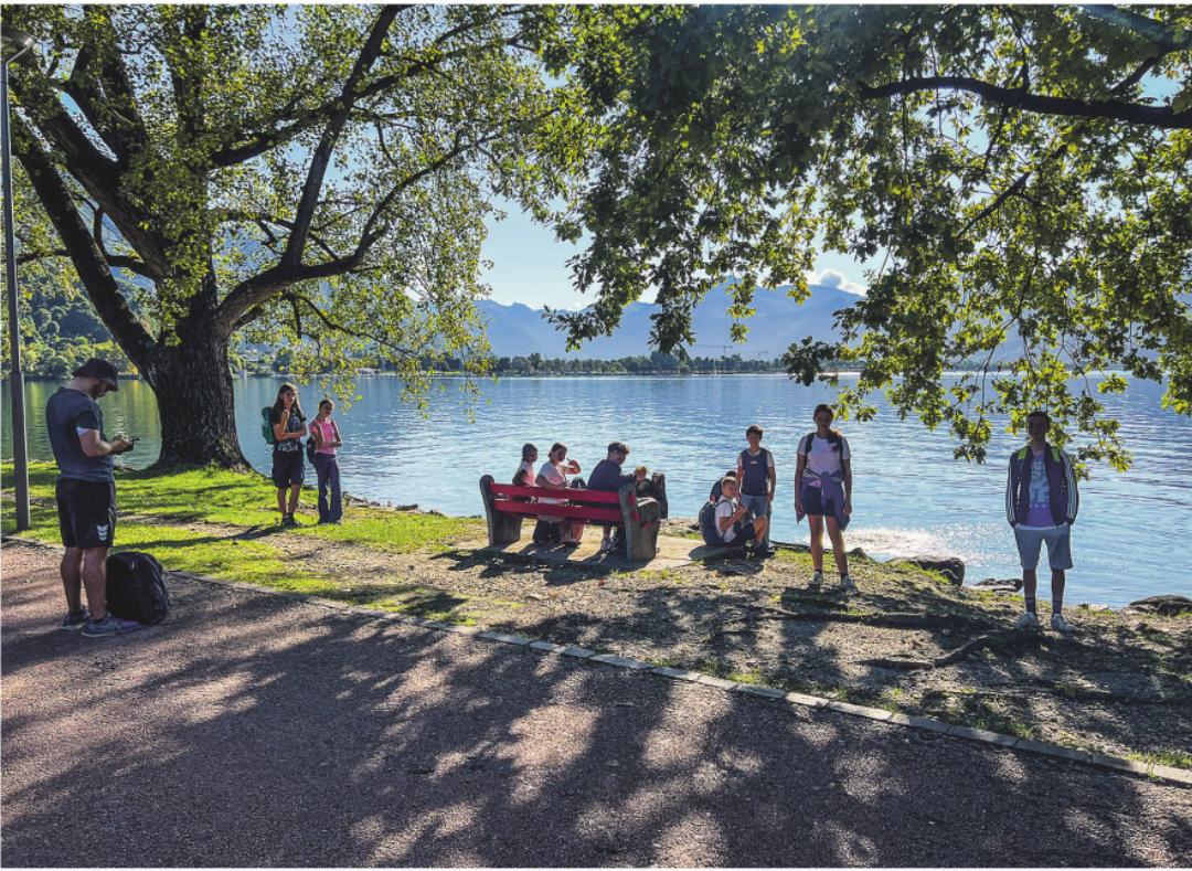 Wir wurden um 6.30 Uhr aufgeweckt von Frau Masciali, denn es gab in einer halben Stunde Frühstück. Beim Frühstück ging wieder mal ein Teller zu Bruch. Nach dem Frühstück hatten wir eine Stunde Zeit, um uns bereit zu machen – wir wollten dem See entlang nach Locarno wandern. Taranom hatte starke Knieschmerzen, also fuhr sie mit einem Bus. In Locarno warteten wir auf Taranom, denn wir durften danach Locarno selbst erkunden. Per Zufall war an diesem Donnerstag Markt. Auf dem Markt gab es lauter Sachen zu sehen, wie beispielsweise «Labubus» oder «Brainrot»-Shirts. Nach zwei Stunden Freizeit gab es den wohlverdienten Mittags-Lunch im Park. Herr Sennhauser ist sogar eingeschlafen. Danach fuhren wir mit dem Bus zurück.