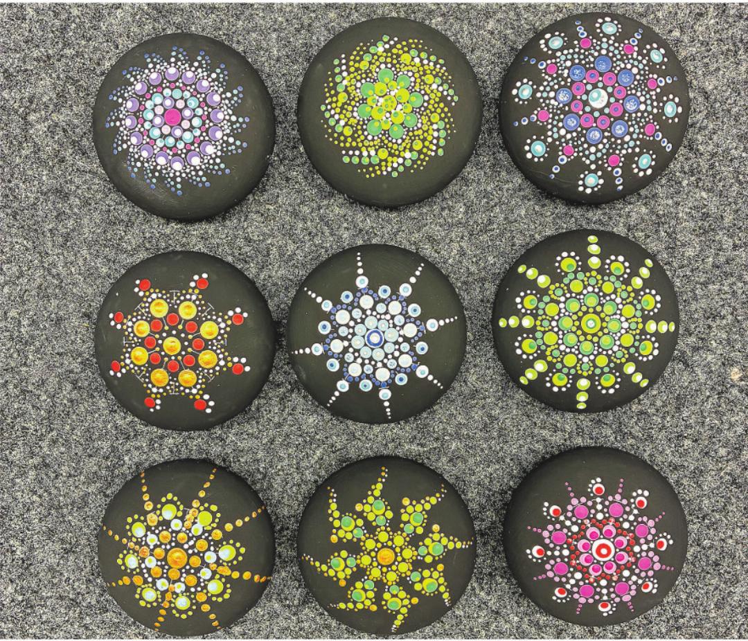 Man hätte sprichwörtlich eine Stecknadel fallen hören können: So aufmerksam und konzentriert arbeiteten die neun Teilnehmerinnen, die um einen Basteltisch versammelt farbige Punkte mit unterschiedlich grossen Stäbchen auf ihre Steine setzten. Nach einer professionellen Einführung in die Dot-Painting-Methode durch Natalie Roduner wurde zunächst auf Papier geübt. Nach einer kurzen, genussvollen Stärkung folgte der Schritt an die Steine. In beinahe meditativer, entspannter Atmosphäre entstanden einzigartige, farbenfrohe Mandala-Kunstwerke. Aufgrund der grossen Nachfrage wird im Januar 2026 ein weiterer Kurs angeboten.