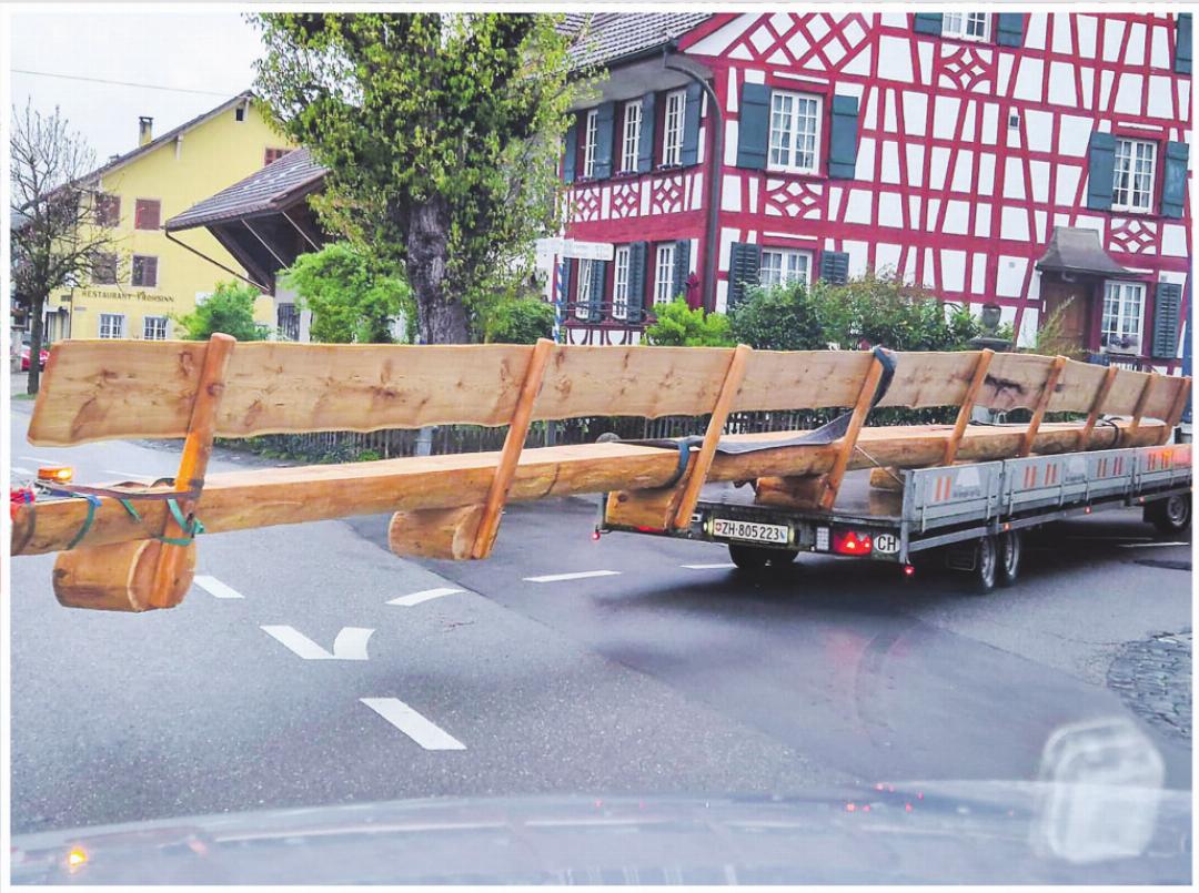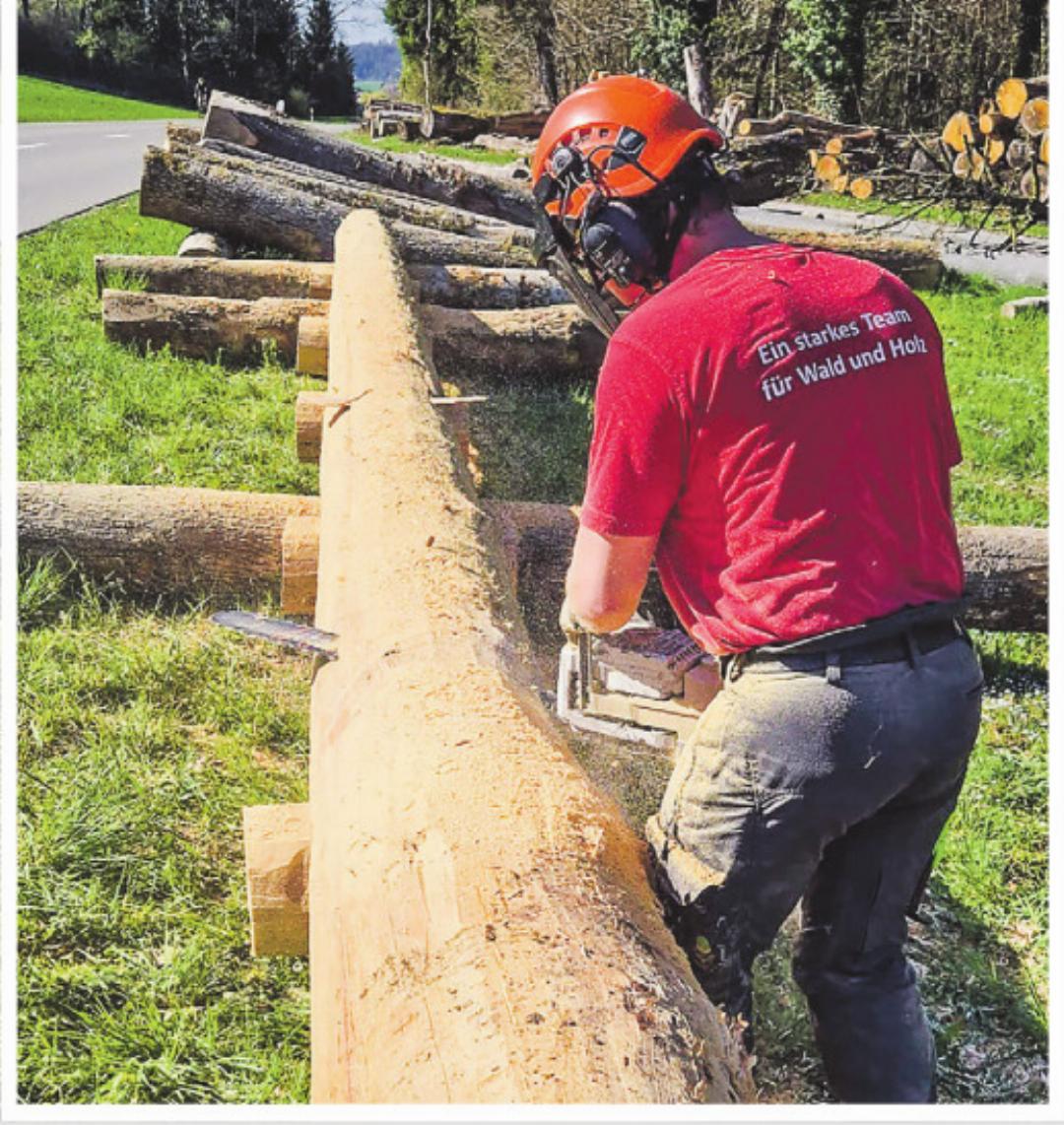 Im Rahmen der Gewerbeausstellung des HGV Elgg entstehen zahlreiche Landbänkli. Ein ganz besonderes Bänkli zum 175. Geburtstag der ZLB hat Forst Elgg aus dem Holz einer Lärche gebaut. Später soll es bei der Ruine Schauenberg aufgestellt werden.