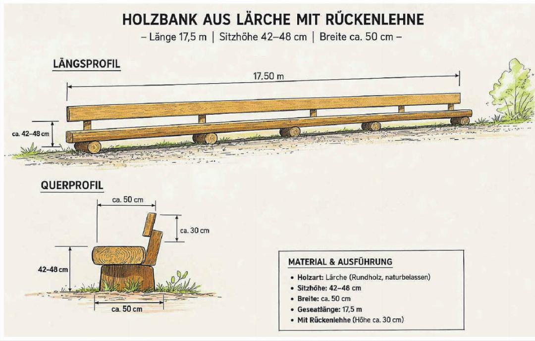 Laut Baubeschrieb wurde die Bank in robuster Bauweise erstellt und fügt sich dank der Naturmaterialien gut in die Umgebung ein. Sie ergänze die bestehende Infrastruktur für Erholungssuchende auf dem Schauenberg, wird festgehalten.