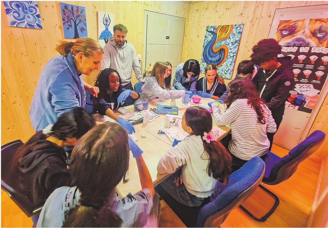Mit herzlichem Empfang und offenen Lächeln begrüssten die drei Gastgeber die Jugendlichen, die ihnen schnell ihr Vertrauen schenkten. Im Jugendtreff gibt es ohnehin immer viel zu erleben – gemeinsames Kochen, Backen oder Basteln gehört zum Programm. An diesem Tag stand jedoch der Berufsalltag in der Pflege im Vordergrund.