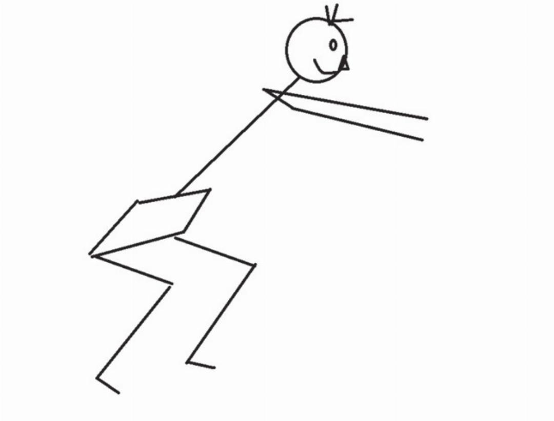 Die Arme bilden das Gewicht, das der Rumpf stabilisieren muss. Das bedeutet, dass, je weiter sie die Arme nach vorne nehmen, desto mehr muss der Rumpf arbeiten. Und je weiter sie nach unten gehen, desto mehr müssen die Beine arbeiten.