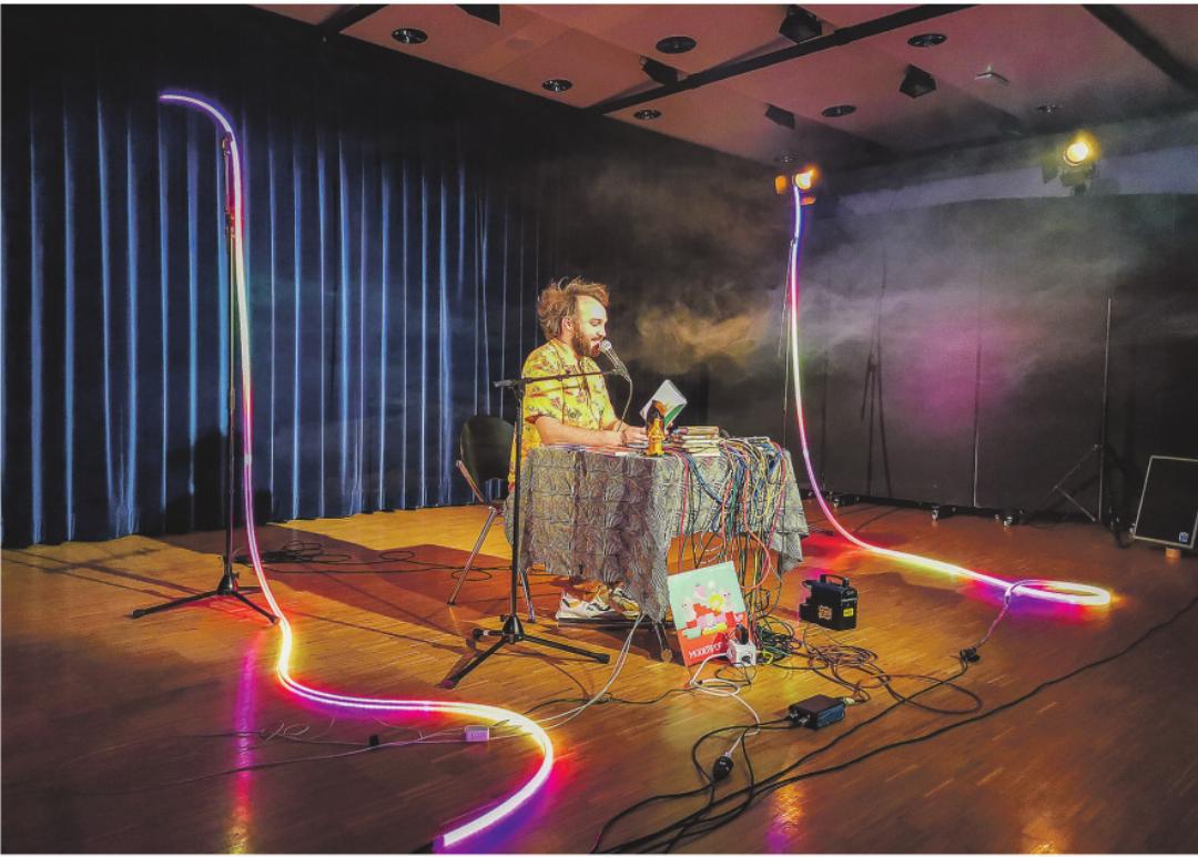 Was Moser in Aadorf zeigte, war weit mehr als eine klassische Lesung. Es war eine dichte, hochenergetische Show, in der er die ganze Bandbreite seines Könnens ausspielte. Irrwitzige Anekdoten, Sprachspielereien, Texte, Songs und performative Einlagen fügten sich zu einem Blick in den quirligen Kopf eines Künstlers mit scheinbar unerschöpflichem Ideenfundus.