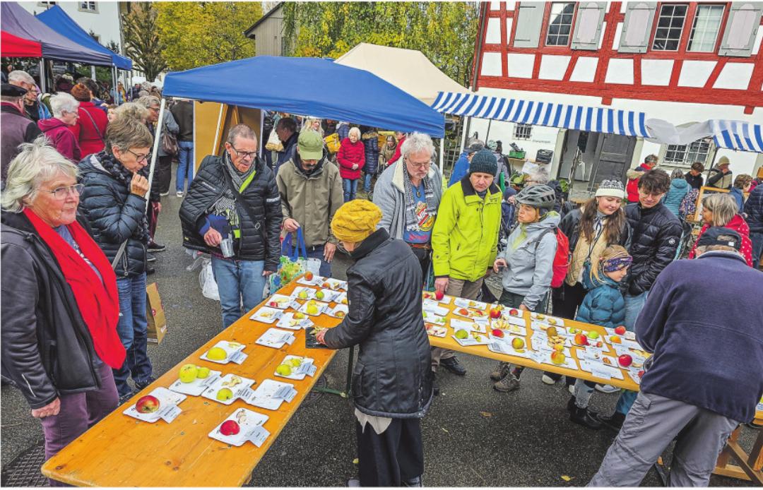 Insgesamt waren 106 Apfelsorten und acht Birnensorten vertreten – eine eindrückliche Vielfalt, die sich auch im Detail zeigt (siehe Box). Die Ernte, so Meier, sei natürlich (im wahrsten Sinne des Wortes) immer naturabhängig: «Es gibt Jahre mit mehr oder weniger Sorten. Dieses Jahr war die Birnenblüte besonders heikel – da hat das Wetter nicht mitgespielt.» Genau dieses Bewusstsein wolle sie den Menschen an den Märkten näherbringen: «Ernte ist kein Selbstläufer. Sie ist Natur – und Natur ist nie planbar. Aber gerade das macht ihren Wert aus.»