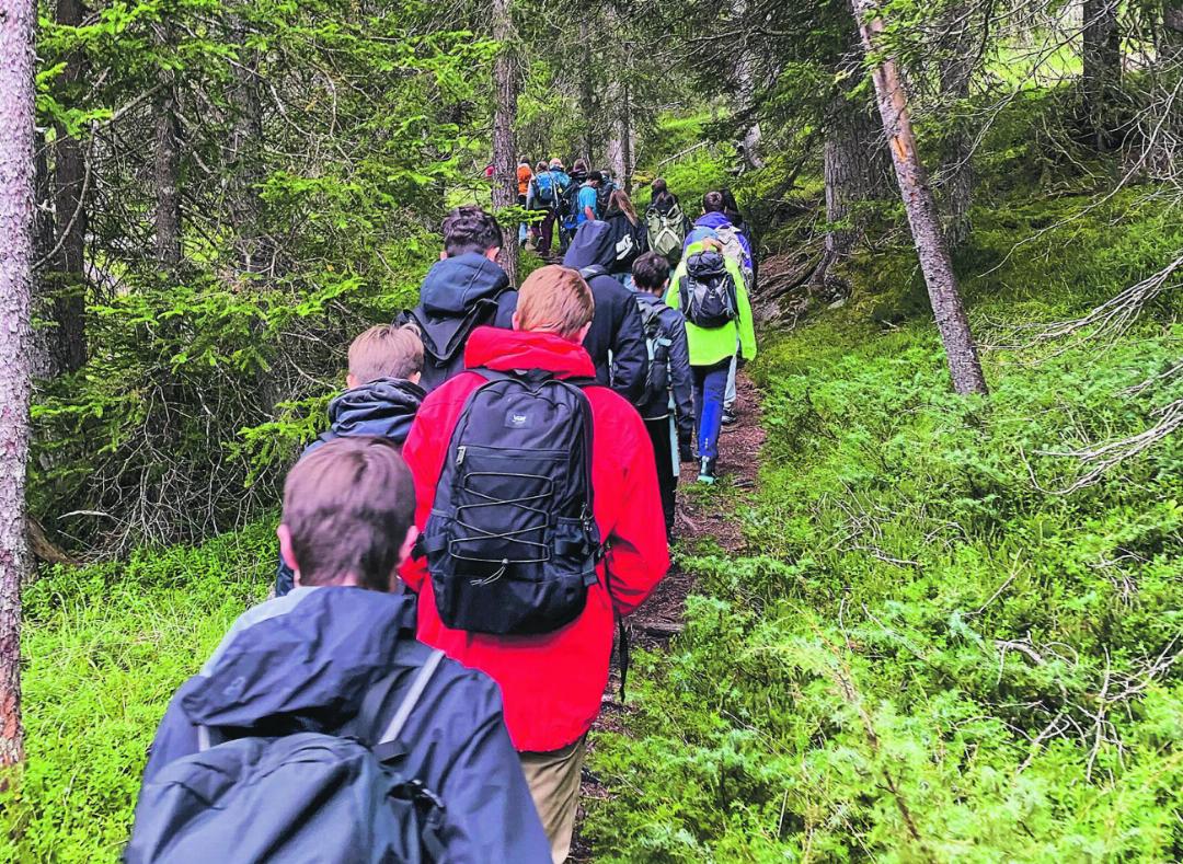 Am Montagmorgen, dem 8. September, startete unser Klassenlager am Bahnhof Elgg. Wir fuhren mit dem Zug nach Scuol und verbrachten den Nachmittag in Vulpera, wo wir mit einer Mystery-App mehr über die Mineralquellen und das ehemalige Grandhotel Waldhaus erfuhren. Wussten Sie, dass das Grandhotel ein Wahrzeichen des Bädertourismus der Belle Époque war? Und was bedeutet das Rätoromanische «bogn» auf Deutsch?