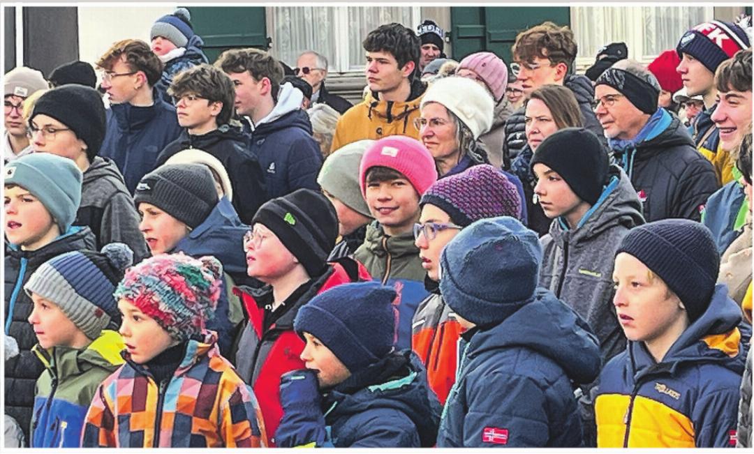 Anschliessend folgte die Wahl des Kaders für den Äschli 2026. Einige Funktionen schienen begehrter zu sein als andere, doch alle Posten konnten besetzt werden. Das neue Kader präsentierte sich stolz auf der Treppe und eilig wurden vom Äschli-Vorstand, stolzen Eltern und der Presse Fotos gemacht. Danach formierte sich der Zug: Voraus die Tambouren, gefolgt vom Äschlikader 2026, marschierten die Buben durch die Gassen.