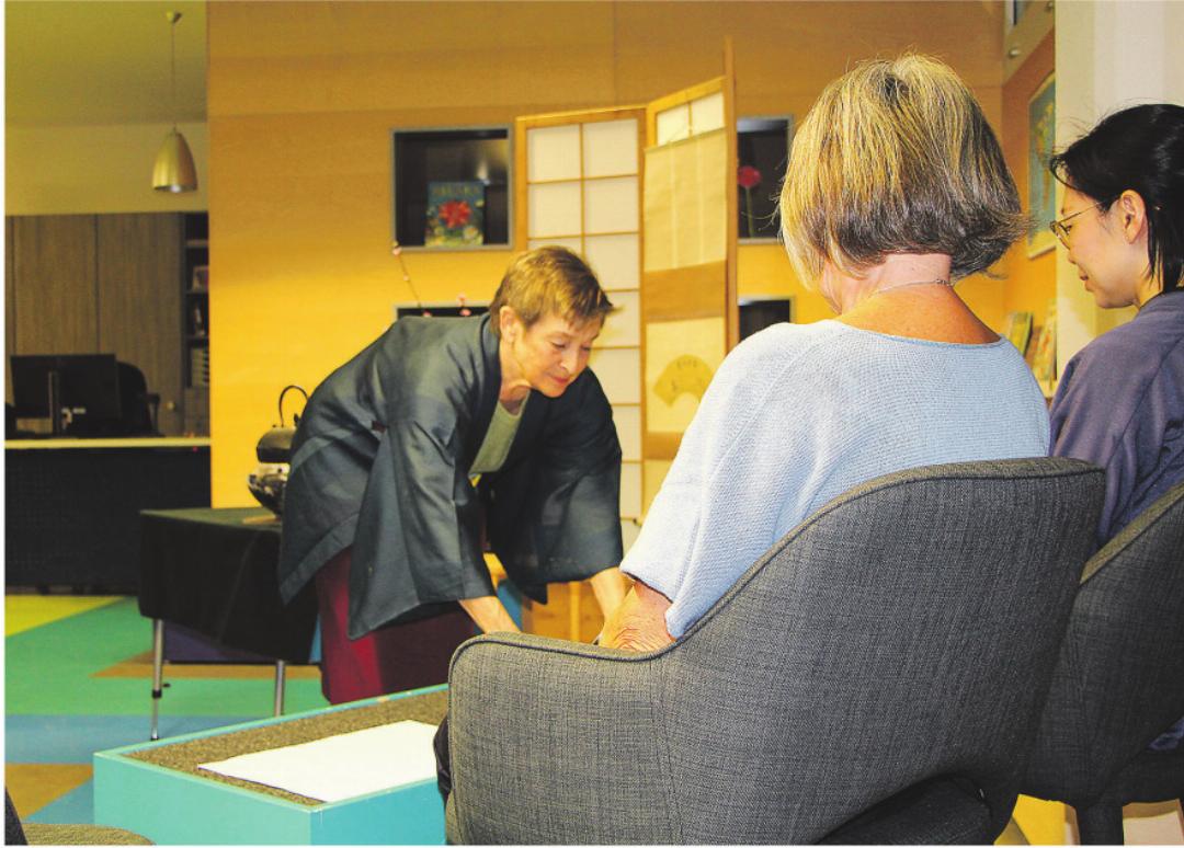 Verantwortlich für die Stille ist Evi Kienast. Nach einem kurzen Referat über die japanische Teekultur bereitet sie Tee zu – langsam, präzise, mit jeder Bewegung bedacht. Rund zwanzig Minuten nimmt sie sich Zeit für zwei Tassen.