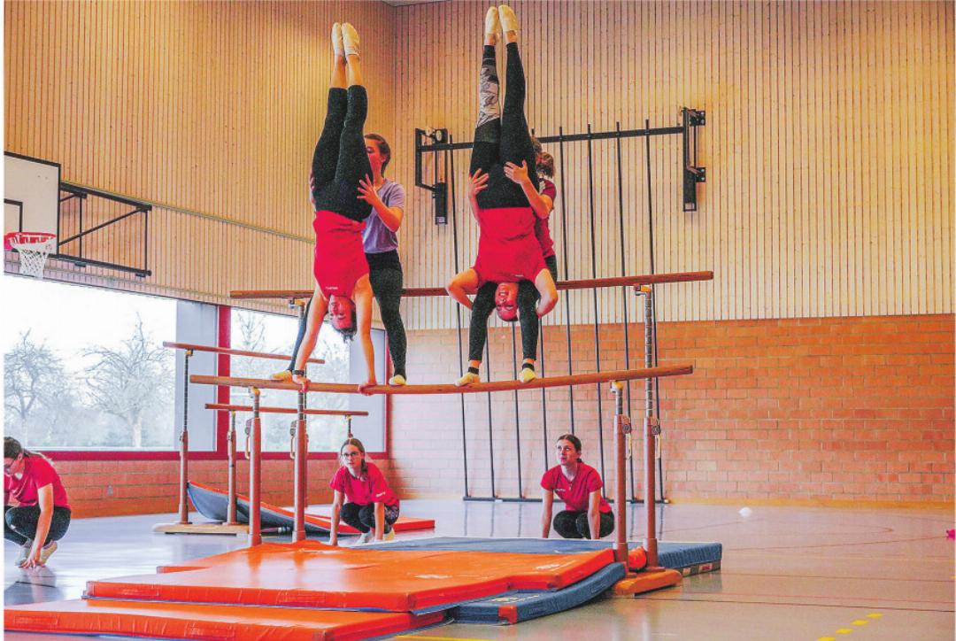 In der Halle angekommen war Schluss mit gemütlich ̶ das Trainingsweekend läutet nämlich die Turnfestsaison ein. Also wurde schon am Morgen fleissig trainiert. Verschiedene Leichtathletikdisziplinen, FTA, sowie die Schulstuffenbarren- und die Schaukelringsektion standen auf dem Programm. «Welche Musik wurde für das neue Schaukelringprogramm ausgewählt?» Endlich wurde das Geheimnis gelüftet und einige brachten den Ohrwurm für den Rest des Wochenendes nicht mehr aus dem Kopf.