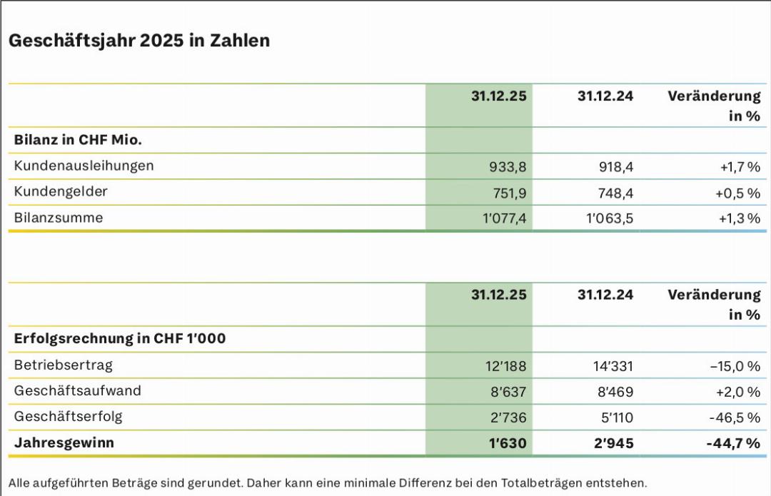 Die Zürcher Landbank (ZLB) profitierte im Jahr 2025 von der grossen Loyalität ihrer Kundinnen und Kunden sowie ihrer Aktionärinnen und Aktionäre. Sie erwirtschaftete in einem turbulenten Jahr einen soliden Jahresgewinn von CHF 1,6 Millionen und blickt mit Vorfreude auf das Jubiläumsjahr 2026.