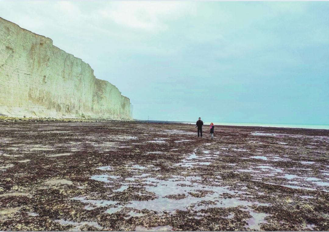 Da stehe ich nun, mitten auf dem Grund des Ozeans. Genau genommen bin ich in den «Ärmel des Englischen Kanals» gerutscht und die Keltische See sitzt mir im Nacken. Machtvoll und erhaben thronen über mir die imposanten Kalksteinfelsen der Seven Sisters und tief beeindruckt betrachte ich mein aktuelles Wandergebiet. Vor mir hüpft das Töchterlein jauchzend über den neu entdeckten Naturspielplatz.