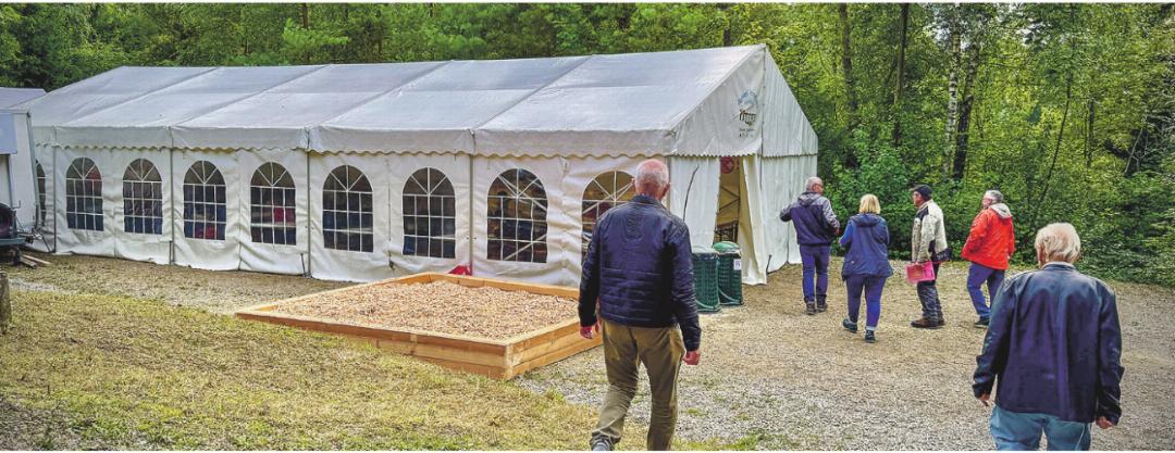 Nach der Führung tat der steile Aufstieg in den Wald an der frischen Luft gut; manch einer äusserte sich zufrieden über seinen Arbeitsplatz im Büro, einer ruhigen Werkstatt oder draussen in der Natur. Oberhalb der Hackenberghütte betrieben die eingeladenen Forstreviere diverse Stationen. Revierförster Christoph Ammann vom Forstbetrieb Fischingen-Tobel referierte zum Thema «Ökologie und Biodiversität im Wald», respektive, wie Waldbesitzende mit einfachen Mitteln dazu beisteuern könnten, diese Bereiche zu fördern. Profitieren könne nicht nur die Natur – rund 35 Prozent aller Tier- und Pflanzenarten sind auf den Wald angewiesen – denn es gebe vom Kanton auch finanzielle Unterstützung für die Umsetzung gezielter Massnahmen. Einfache Mittel seien beispielsweise Totholz liegen lassen, Ast- und Steinhaufen aufschichten oder seltene Sträucher pflanzen. Kompliziert wird es hingegen bei Sanierung von Weihern, wie ein Waldbesitzer erzählte, der dieses Vorhaben wieder verwarf: «Ich hätte eine Reihe von Eingaben machen müssen – beim Amt für Wasser, Energie und Luft (AWEL), beim Forstamt und bei der Gemeinde. Unterstützung gab es keine, aber einen Haufen Vorschriften und Kosten, die meinen Rahmen überstiegen.» Ammann erklärte, dass es von Kanton zu Kanton anders gehandhabt werde, im Thurgau sei es verhältnismässig einfach. Mit oder ohne Weiher oder Tümpel, herausfordernd ist die Pflege für jene, die in ihrem Waldstück nur einheimische Pflanzen wünschen: «Neophyten sind eine grosse Herausforderung für uns alle. Sie müssen ausgerissen und am besten im Neophytensack entsorgt werden.»