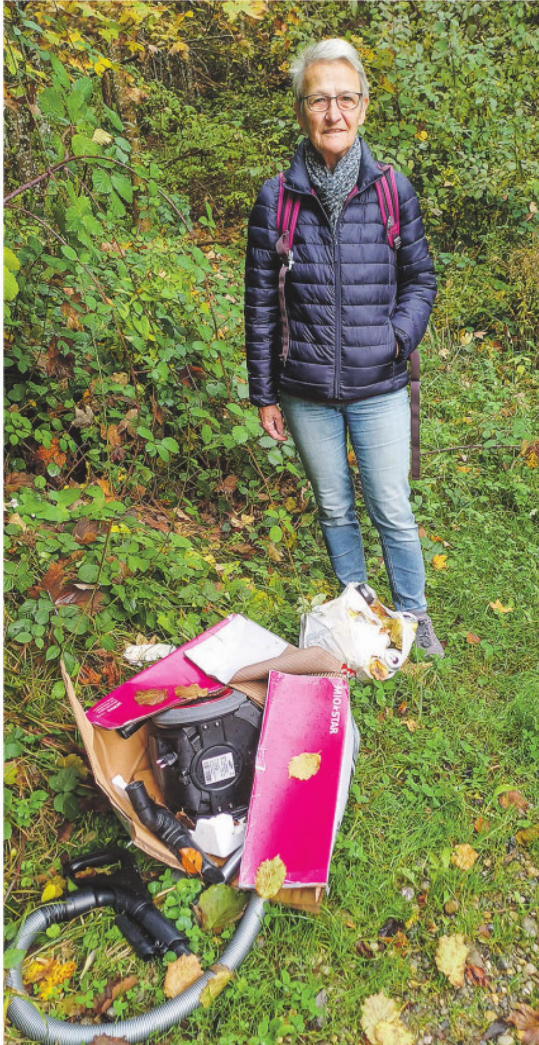 Am Rande eines kleinen Parkplatzes sticht ihr eine Kartonschachtel mit einem wohl ausgedienten Staubsauger ins Auge – und ins Herz. Daneben liegt ein Plastiksack mit leeren Getränkedosen. Noch nicht genug des Ungemachs: Beim Weitergehen entdeckt die Aadorferin inmitten von Brombeersträuchern zwei weitere schwarze Plastiksäcke, gefüllt mit undefinierbarem Abfall. Dazu kommt noch ein weiterer Nachweis für unsachgemässe Entsorgung – papierene Nastücher und Plastik, die zwischen Blättern und Pilzen den Weg säumen.