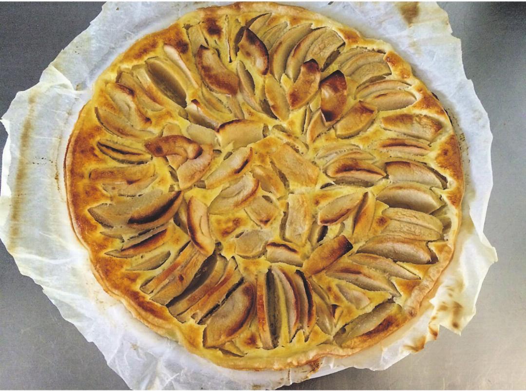 Freuen Sie sich auf saftige Äpfel, umgeben von süssem Guss auf knusprigem Teig.